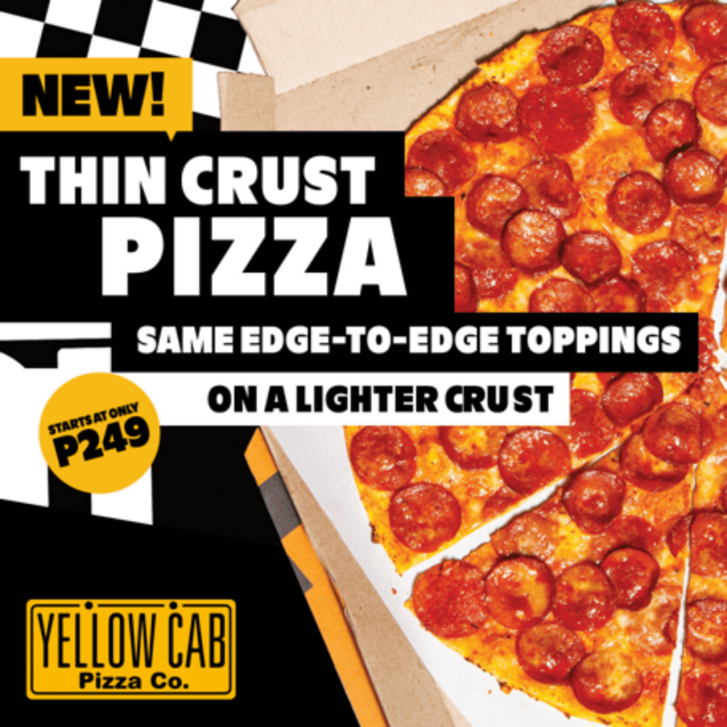 The new NY-Style Thin Crust Pizzas are now available in all Yellow Cab stores nationwide for dine-in, Curbside® pick-up, take-out, and delivery. This is also available via GrabFood, foodpanda, and LalaFood.