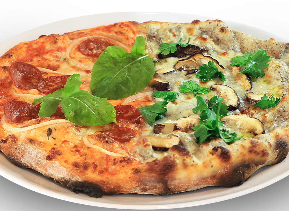 Pizza Due, meanwhile, consists of two flavors. You can choose any two from the following: Pepperoni, Quattro Formaggio, Tropicale, and Truffle Mushroom.