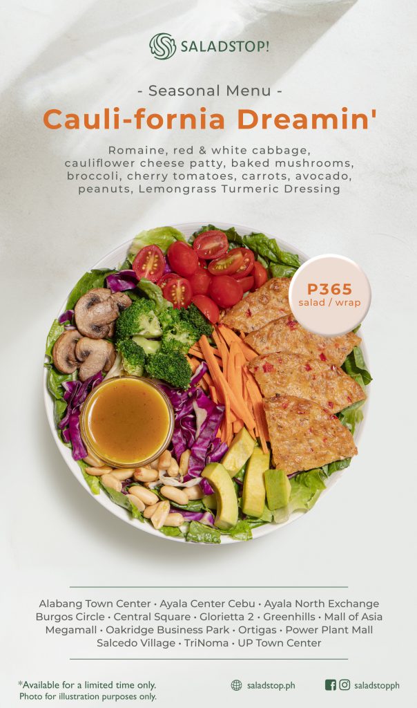 Available at all SaladStop! branches in Metro Manila and Cebu, this limited offering is available in both wrap and salad variants for P365.00, from May 18 to June 28, 2021 only.