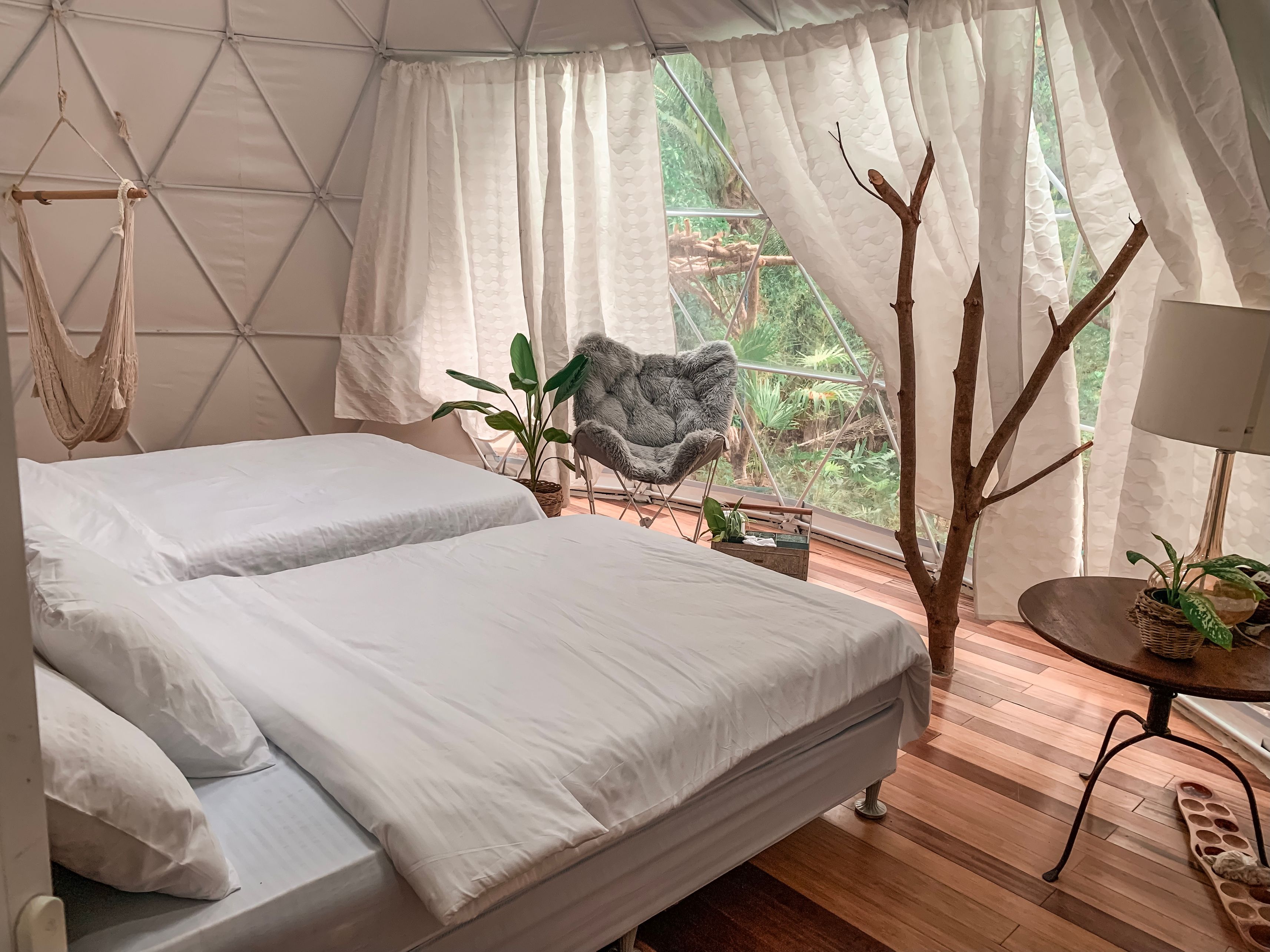 | Awake to picturesque views of lush greenery outside the dome | Spend the afternoon dipping in this sustainable outdoor swimming pool |